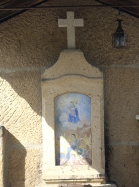 suportam uma pequena cruz e o telhado de um nicho de pedra lavrada.